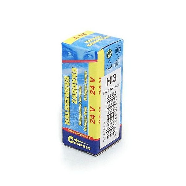 Halogenová autožárovka 24V, homologace E. Sklo žárovky s UV filtrem - žárovka je vhodná pro všechny druhy světlometů.