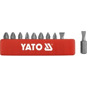 Bity Yato YT0483 je sada kvalitních bitů kovanyých za studena z oceli nejvyšší třídy jakosti S2 a povrchově tvrzené na tvrdost HRC 58 - 62. Hroty bitů používají tzv. GRIPP systém který zajišťuje přesné spojení bitu s hlavou šroubu a významně ovlivňuje přenos kroutícího momentu.