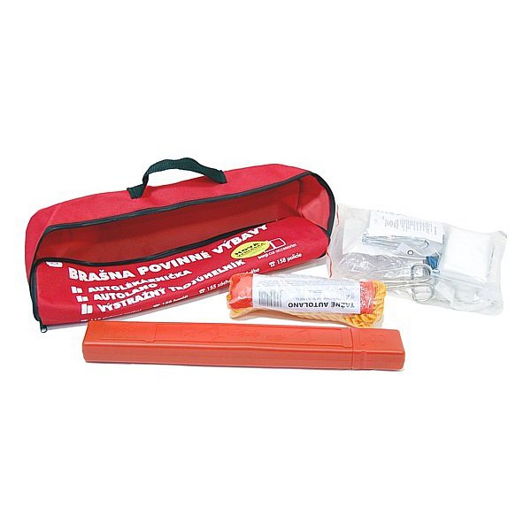 Brašna obsahuje:tažné lano,výstražný trojúhelník,autolékárničku vel. I.