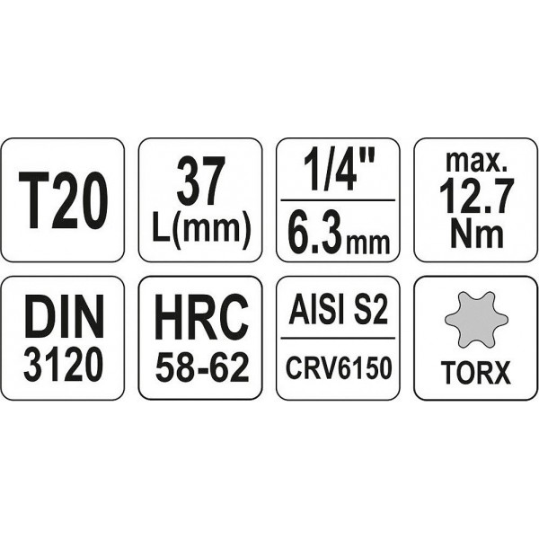 Profesionální šestihranný bit Torx pro 1/4" ráčnu. Nástavec je precizně a přesně zhotoven z pochromované oceli CrV6150 a samotný bit z nerezové oceli AISI S2 vrstvené niklem pro vysokou odolnost.