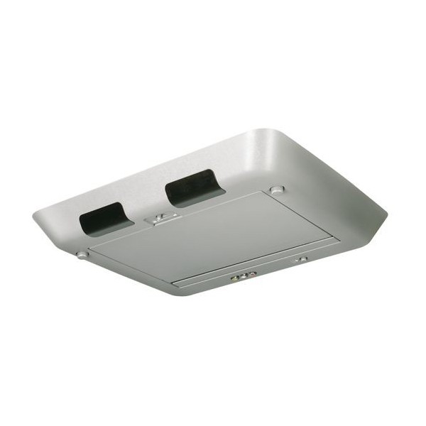 Přenosný systém skládající se z přehrávače DVD a základnové stanice pro umístění na strop automobilu.