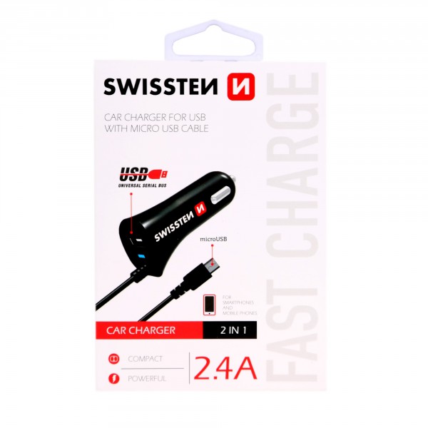 Kvalitně zpracovaná autonabíječka do zapalovače s konektorem microUSB z modelové řady SWISSTEN. Díky výstupnímu proudu až 2,4A můžete dobíjet jak smartphone, tak i tablet.