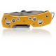 Multifunkční nůž z aluminia žluto-zlaté barvy, s nástroji z nožířské oceli. Užitečný pomocník Multi pro camping, rybaření a další outdoor využití. Čepel a další nástroje nože jsou zhotoveny z nožířské oceli 420J1. Materiál dosahuje tvrdosti HRC48.