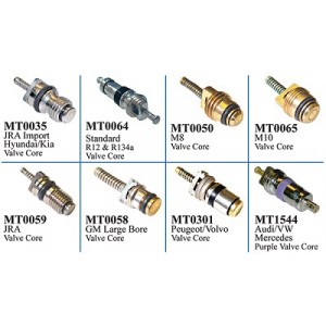 Sada ventilů do autoklimatizace v plastovém zásobníku.